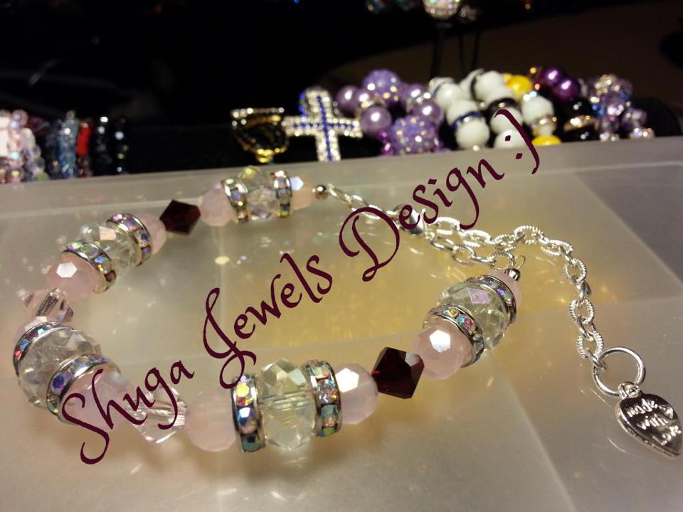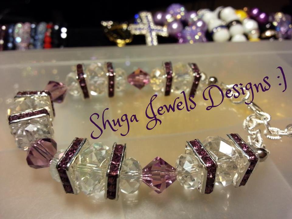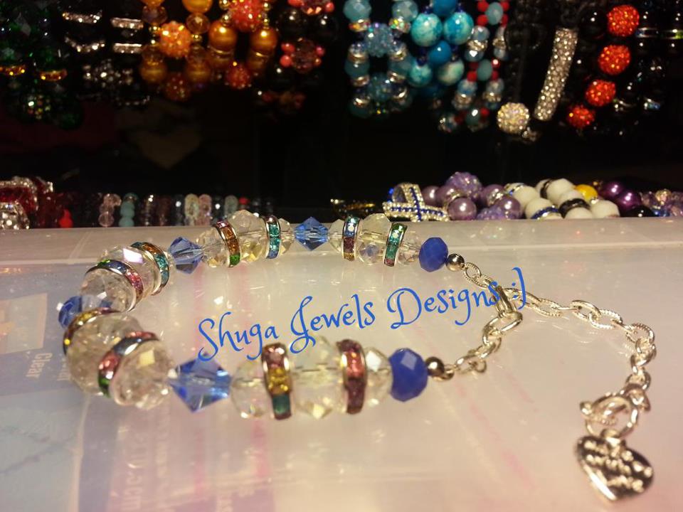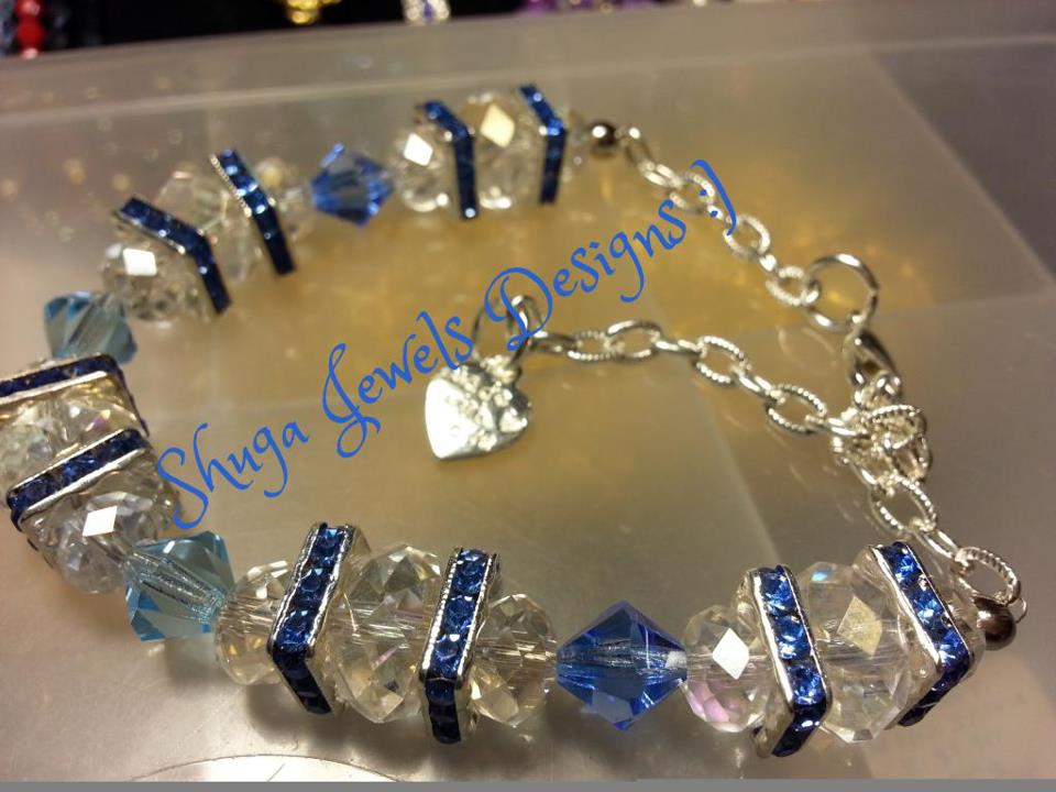 Made with silver colored findings and clasp closures and glass colored beads with rhinestone bling spacers and Preciosa birthstone crystals.
