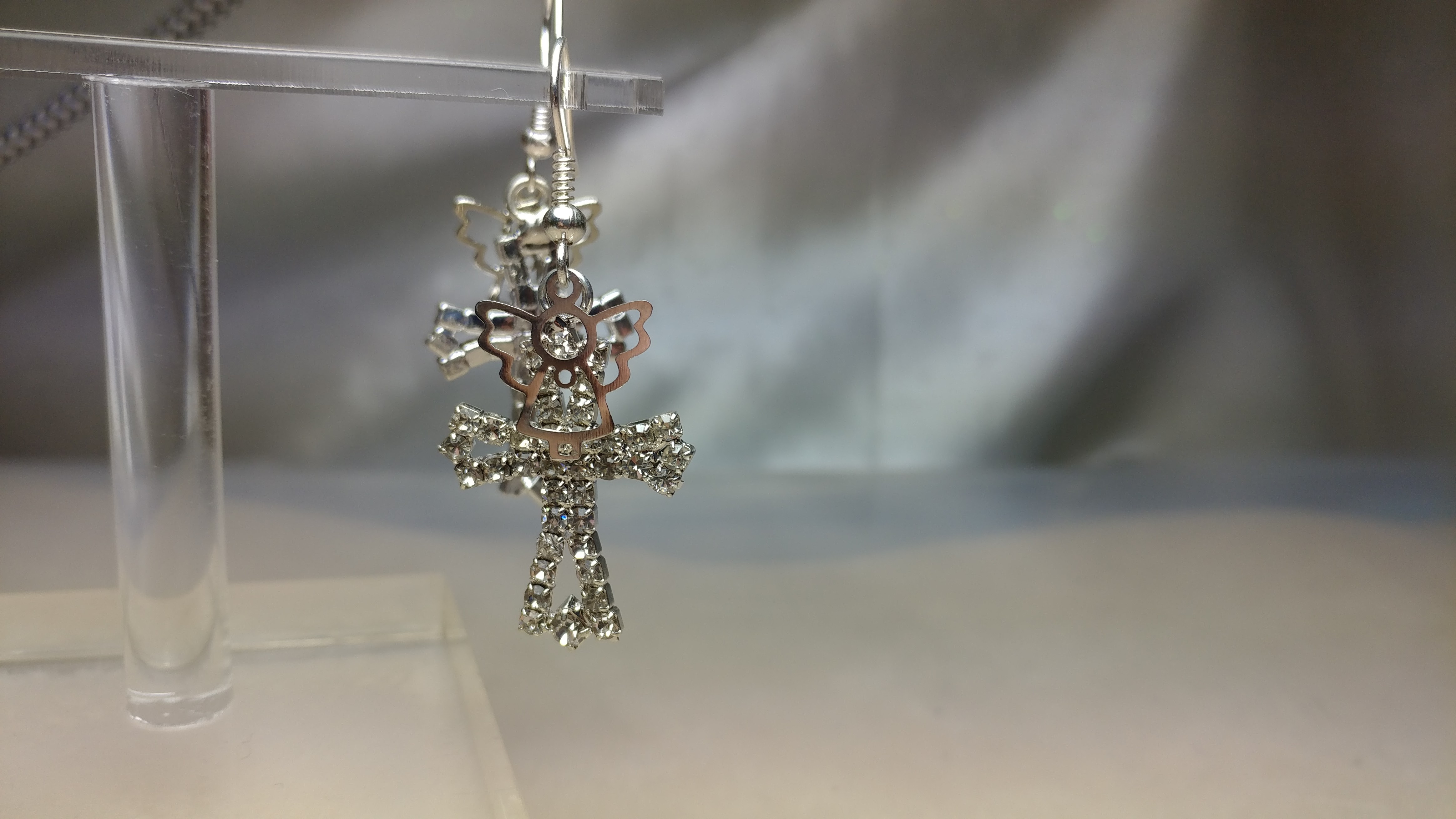 Made with a silvertone angel charm, pair with a rhinestone silvertone bling cross.