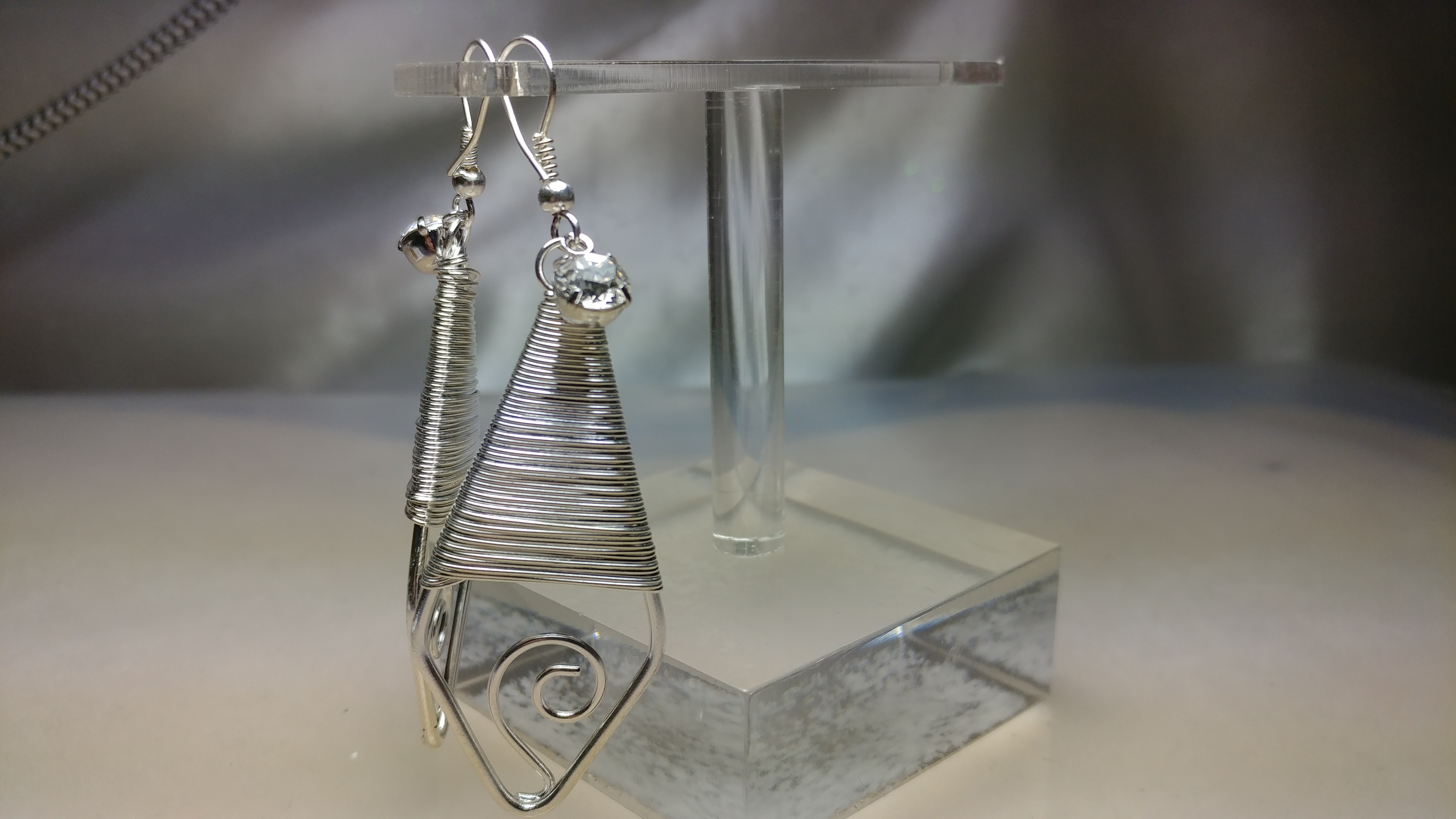 Made with a Silvertone Swarovski crystal charm, pair with a rhinestone silvertone wrap wire earring.