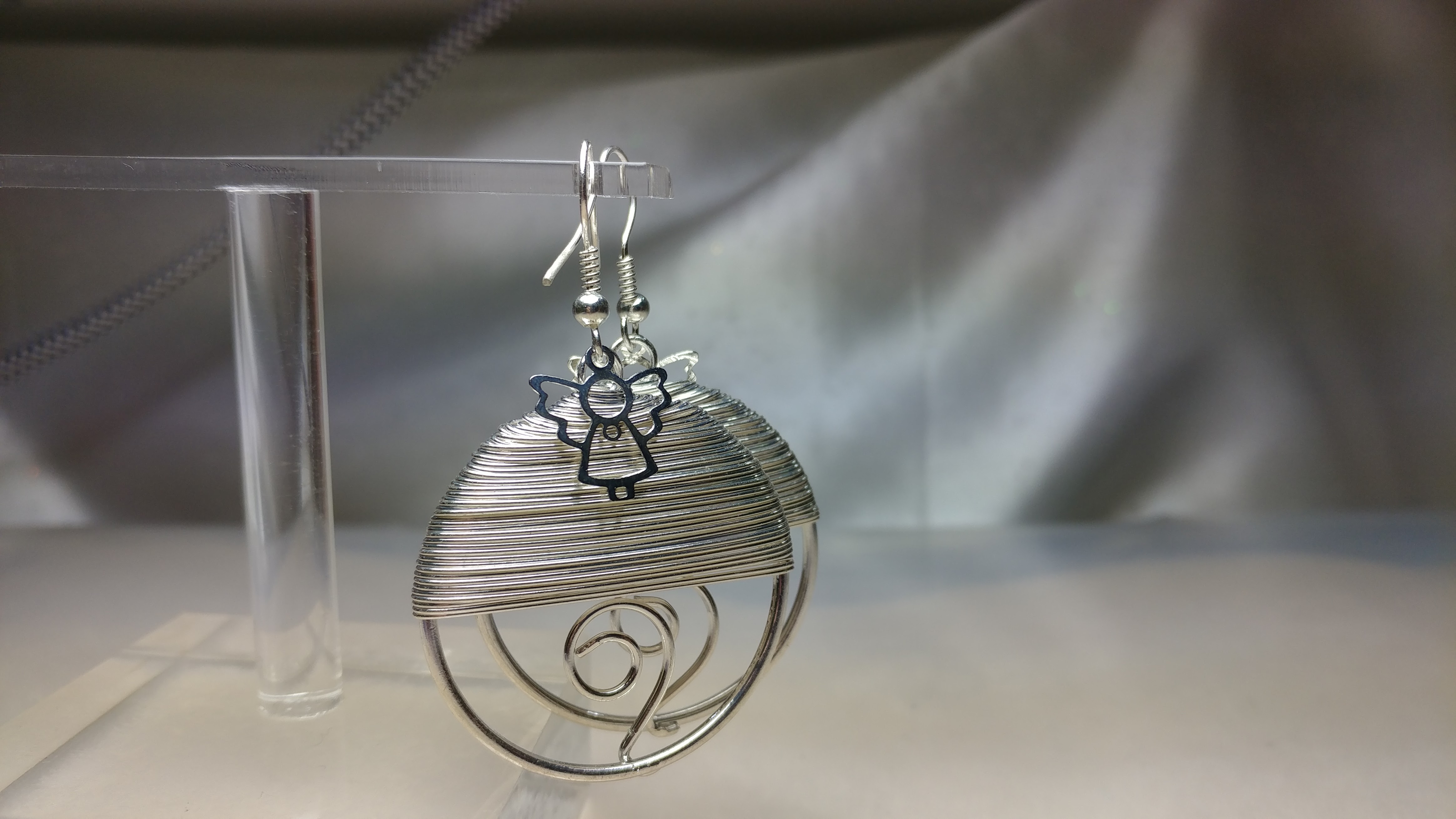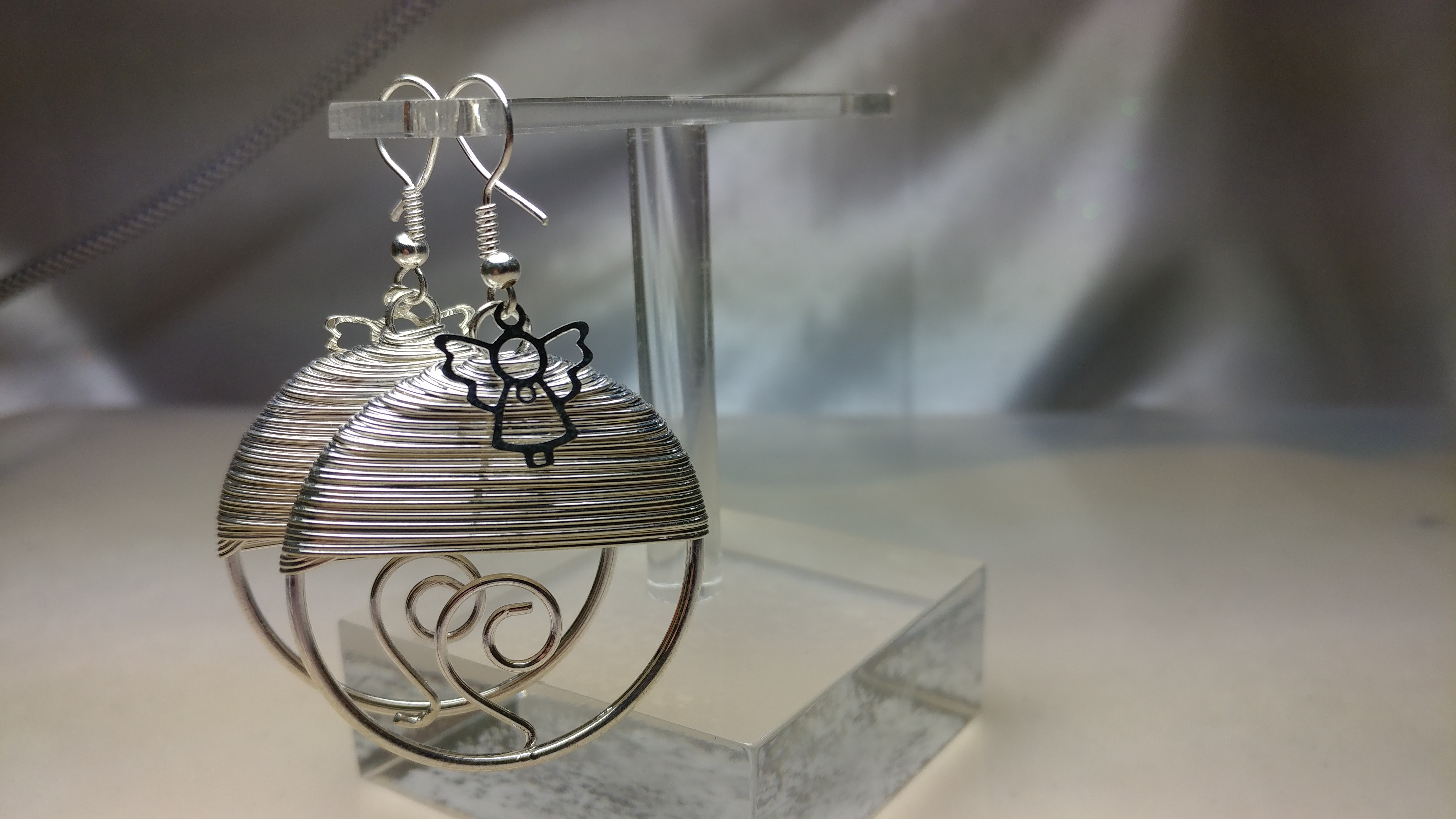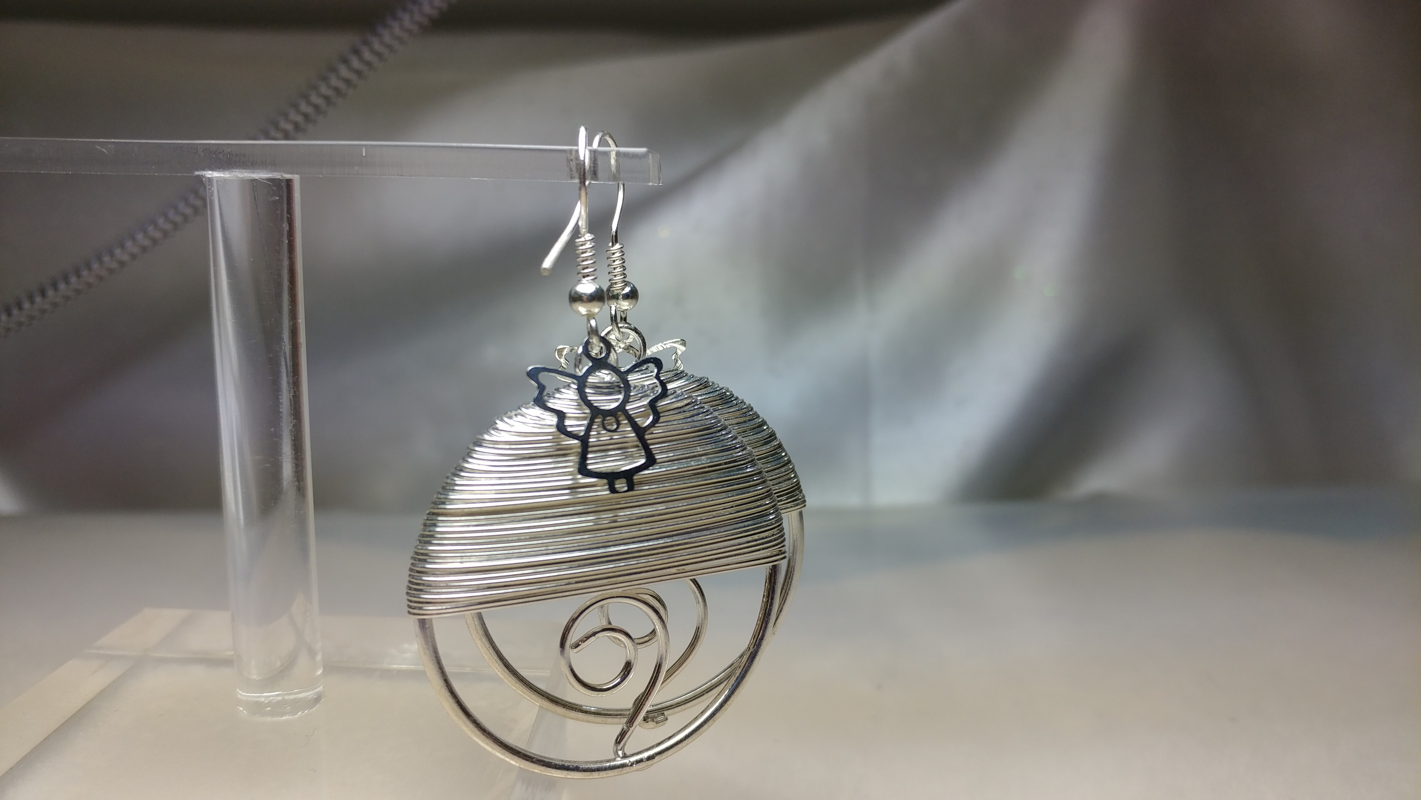 Made with a Silvertone Swarovski crystal charm, pair with a rhinestone silvertone wrap wire earring.